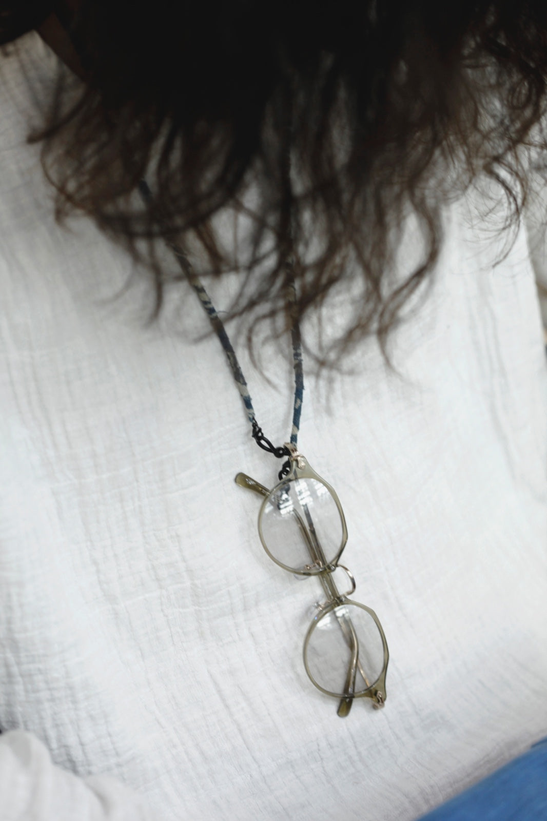 擅長以「Boro Bonsai」植物為概念的香港藍染襤褸古布設計單位 222 the backyard,由認識日本襤褸古布文化到親身縫製作品逾十個年頭,今次由人類光學促成,找來日本手造眼鏡單位United Vintage,打造實用與觀賞概念,製作出舒適性與美感兼備之古布眼鏡鏈。