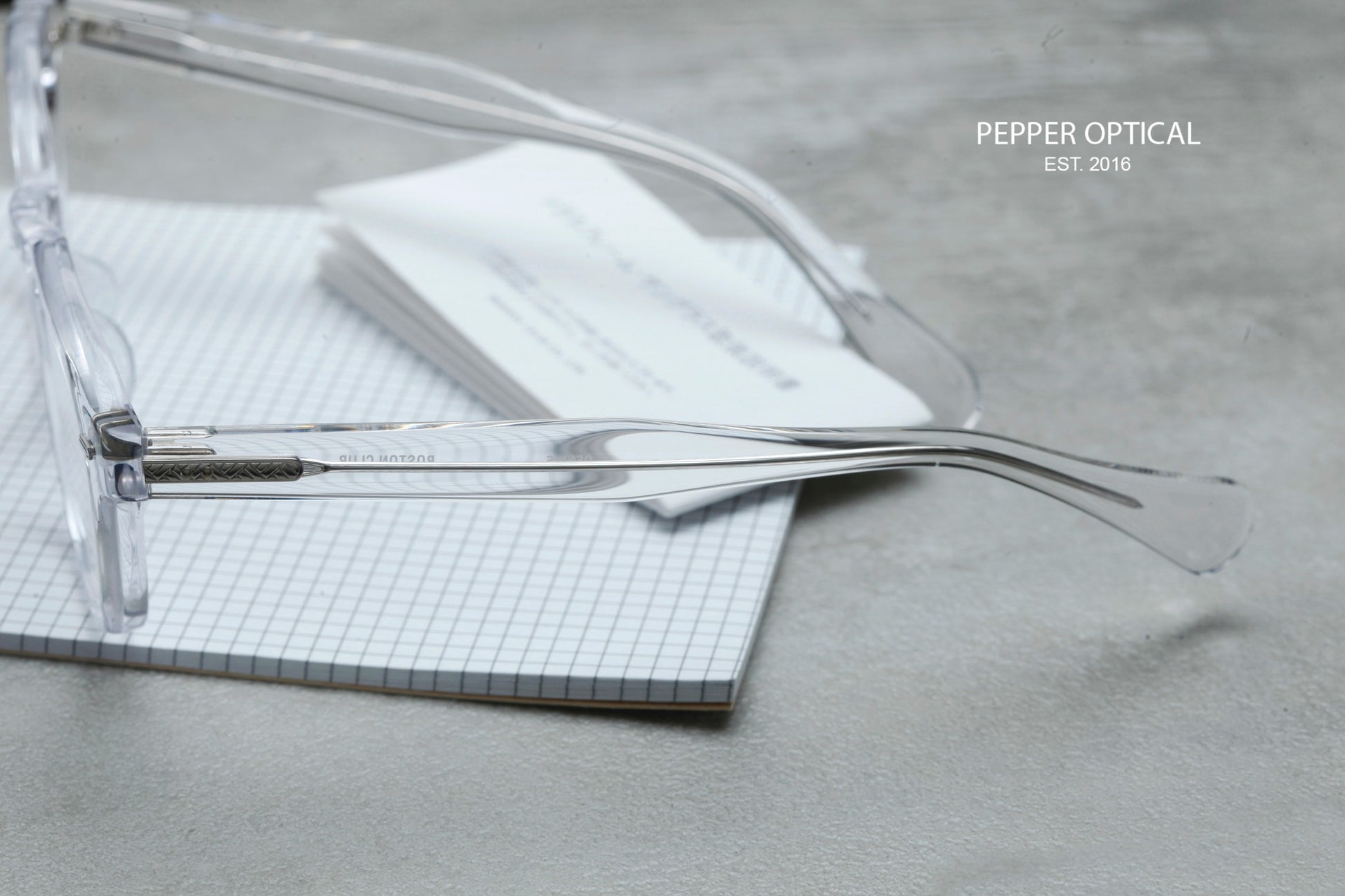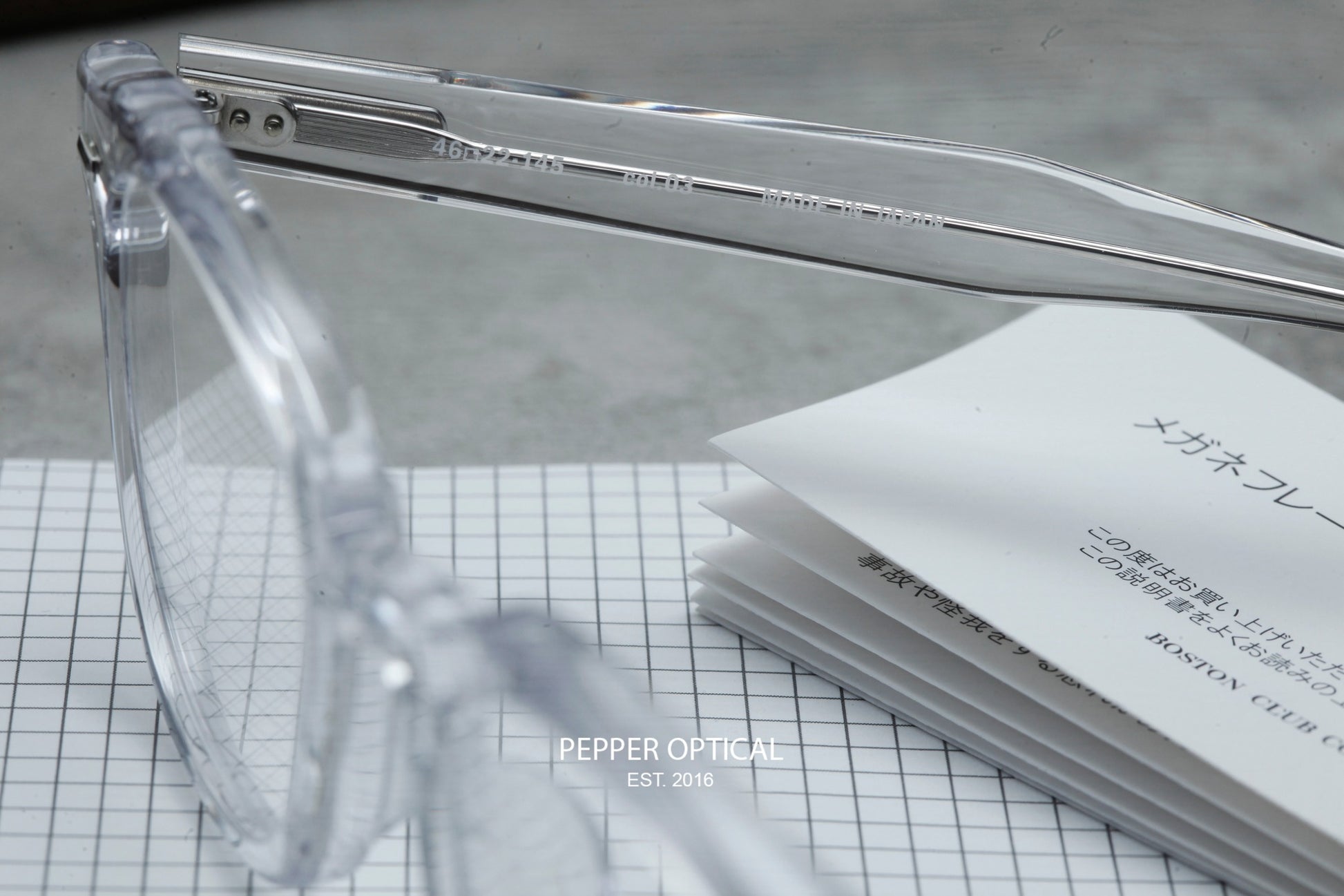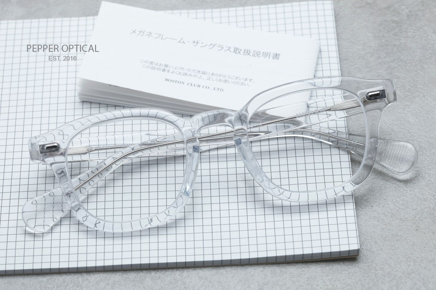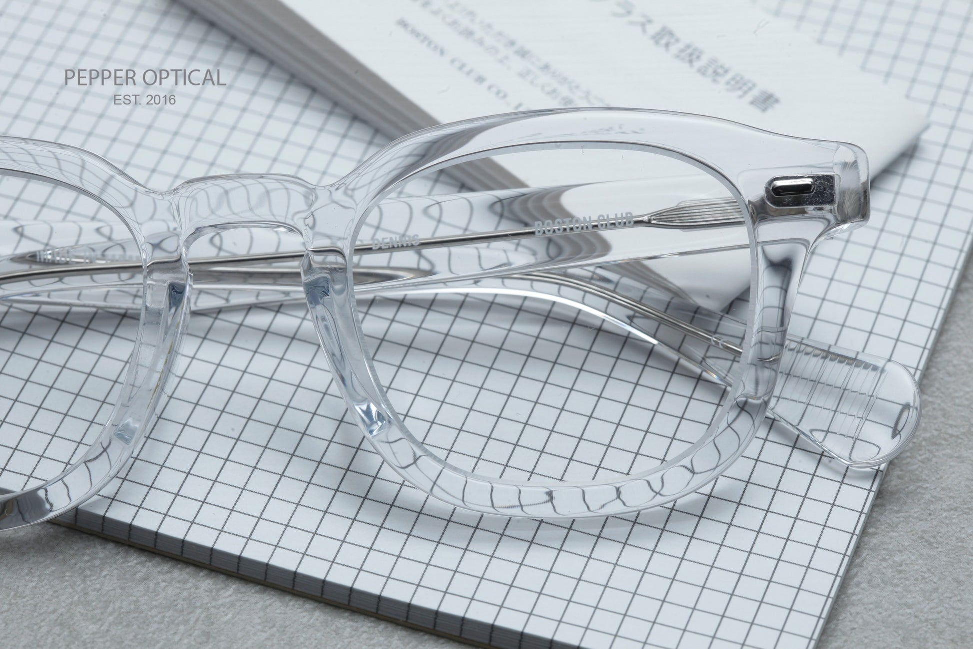 乘住美式風格在日本興起的浪潮,Boston Club在1984年日本成立。因此Boston Club多多少少帶有濃厚的美式眼鏡血脈。而製作就由日本福井的職人所製作,可說美式日牌的老祖宗之一。而今季在反璞歸真的氣氛下,今季Boston Club就以經典美式Wellington鏡架為藍本推出這副Dennis。不過Boston Club在板材選取上卻別出心裁,其中這副Crystal透色板材,就已經在日本方面大賣,在極少量返貨底下,這副Dennis絕對是店長今年推介之作!